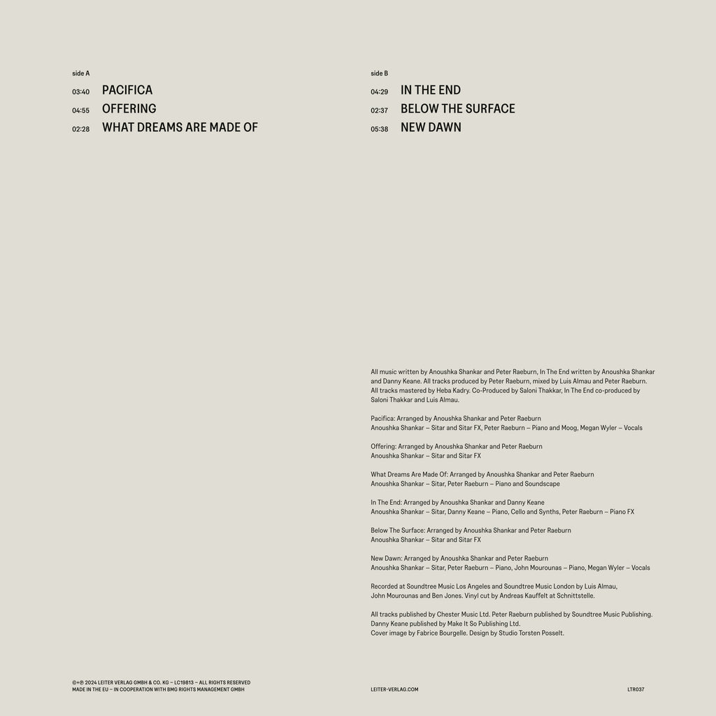 The new collection opens up whole new musical realms for Shankar, with its tranquillity given an additional glimmer and shimmer that can at times make it sound as much like a timeless Eno-esque vignette (“Offering”) as it does a lost cut from the Cocteau Twins’ Victorialand (“What Dreams Are Made Of”) or even something by New York trio SUSS (“Below The Surface”). In fact, Shankar confesses she had a further, albeit subconscious ambition for these recordings: to overcome the spiritual clichés sometimes associated with instrumental sitar music. “I’ve been wanting to make slow, peaceful music like this for a while,” she explains, “but I have no desire to create an album that makes people flashback to the 1960’s. It's about looking forward. The explosion of fresh, neoclassical piano music has been inspiring, and it's about time the sitar was discussed in the same way.”